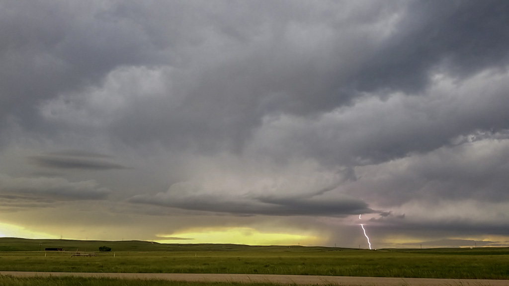 From here we went into Wyoming, and as we neared Moorcroft, we could see Devil’s Tower in the distance. We drove through Gillette and went south, making a stop to watch a couple of systems form.