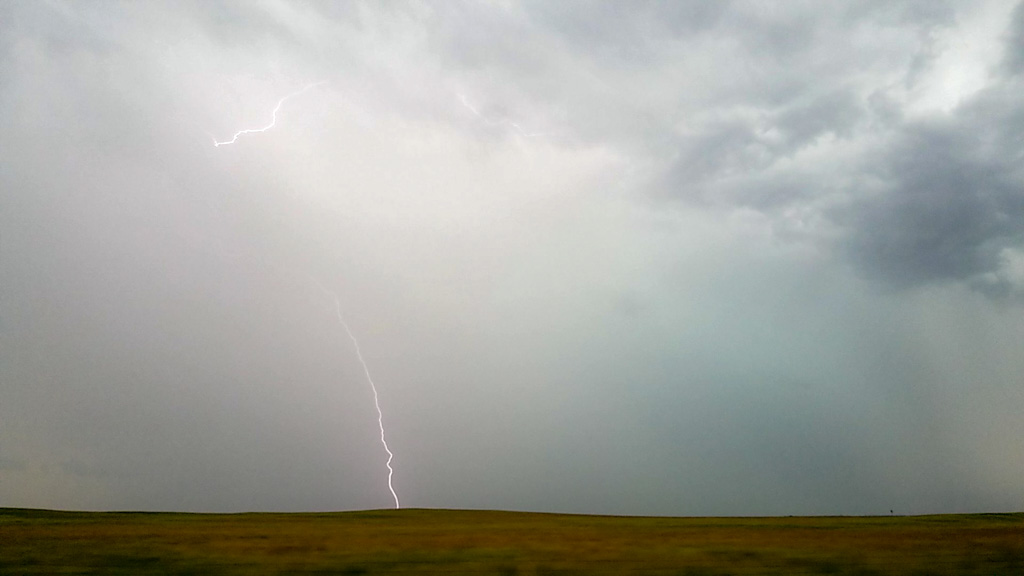 We had to mooooove on and headed north, passing through Valentine and picking a storm to the north of the line. We had some decent lightning while we were approaching it and used our cell phones to capture some images while we drove.