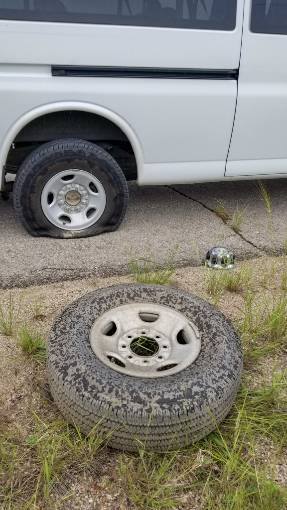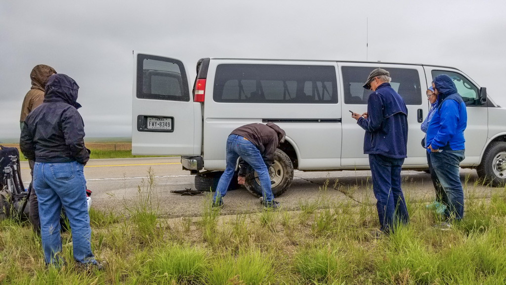 Luckily, the spare was in good shape and all the tools needed to change the tire were there. (When I worked as a mechanic in the Armed Forces, I can’t tell you how many times we’d find a truck with no jack, no lug wrench or a flat or missing spare. Kudos to Tempest Tours for ensuring the equipment was there and in good working order!).