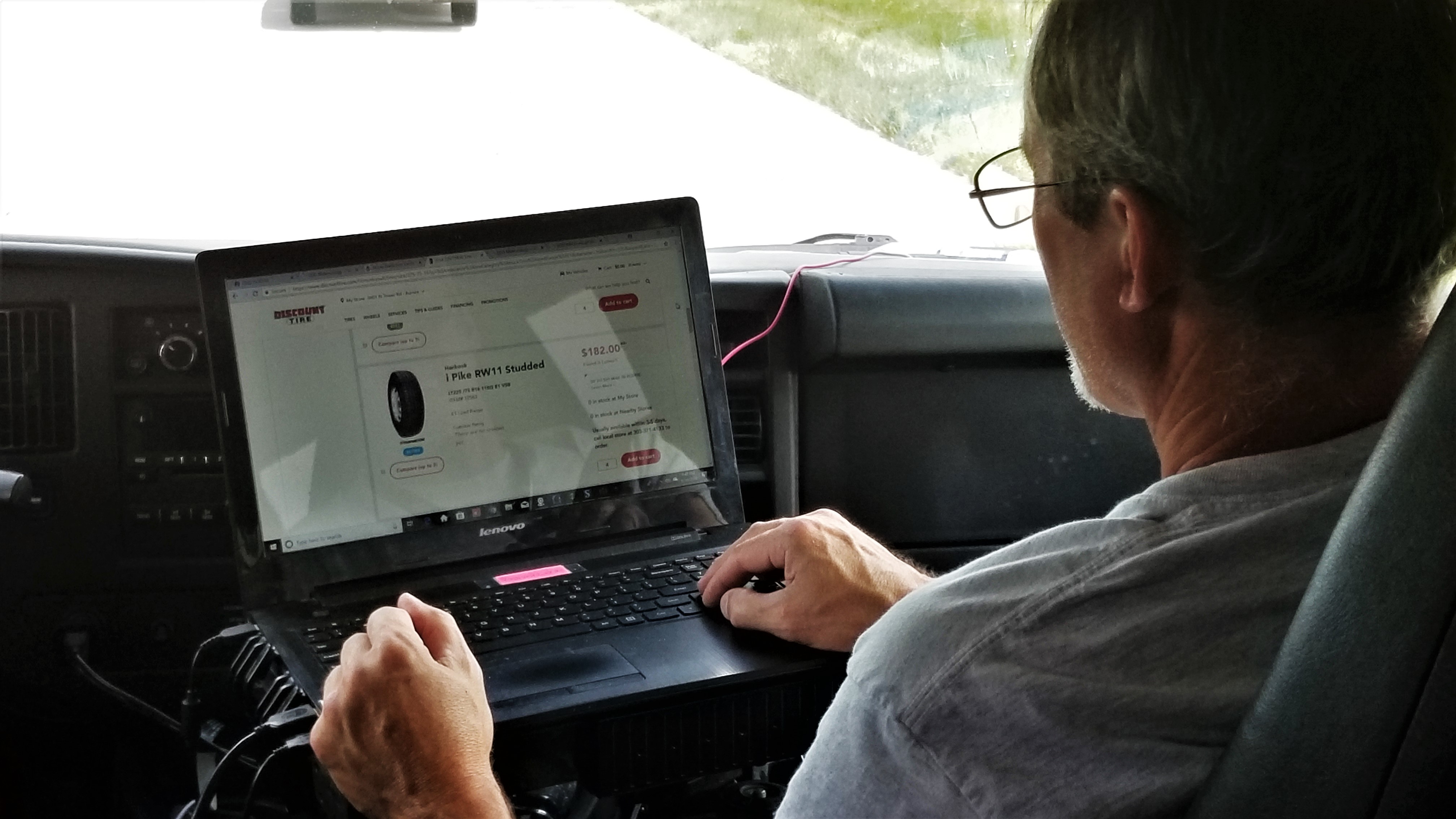 So, just before we got to Lusk, Wyoming, we noticed that Chris was browsing for tires on the internet.
