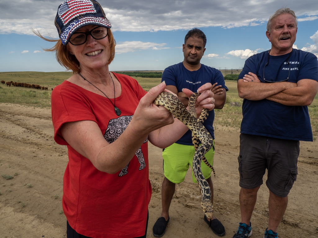 Then someone found a snake on the road, and once again, Chris was the first to say hello to the little guy.