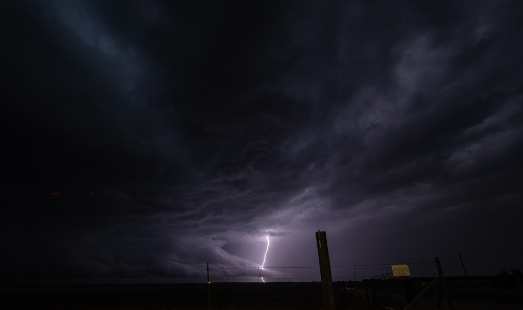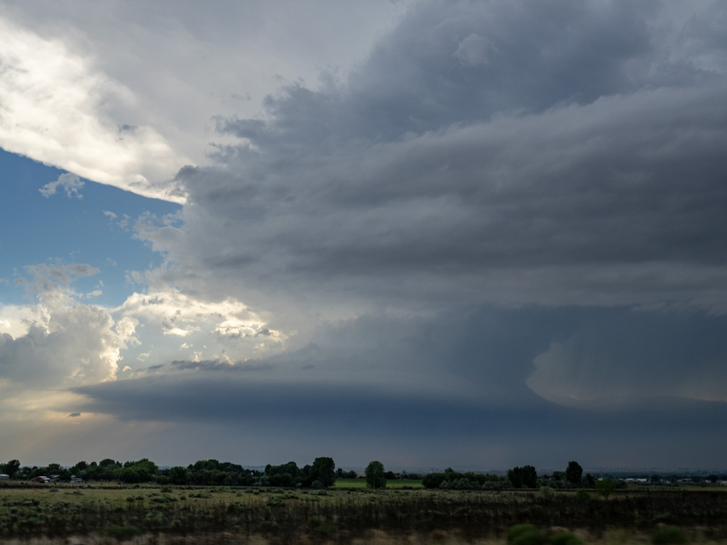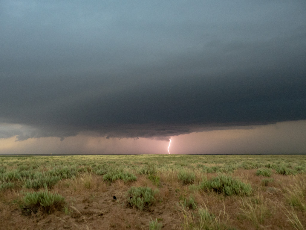 Then we found a sweet spot near Orchard, Colorado where we had an unobstructed view of two cells side by side. One had lightning. One didn’t.