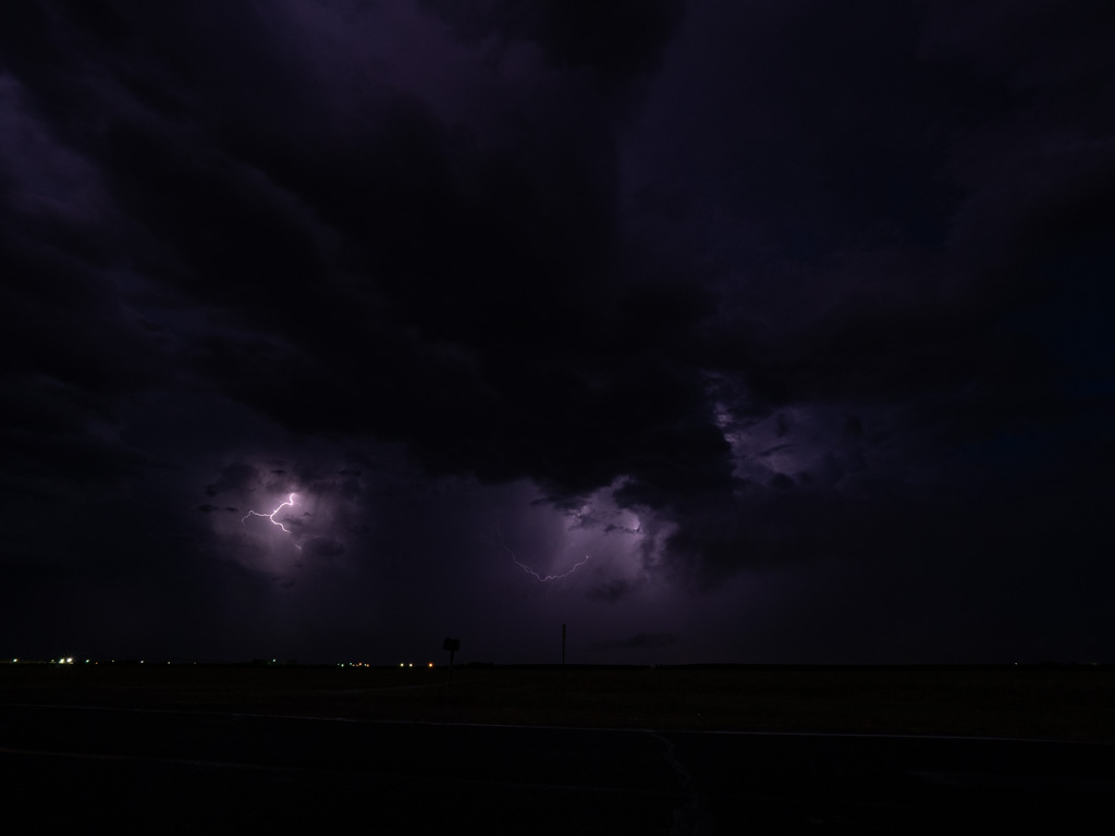 We headed northeast and the rain got quite heavy. We got as far as Fort Morgan just after sunset and turned around to look for a good lightning show to watch. We had to drive about twenty minutes to get in between two systems.