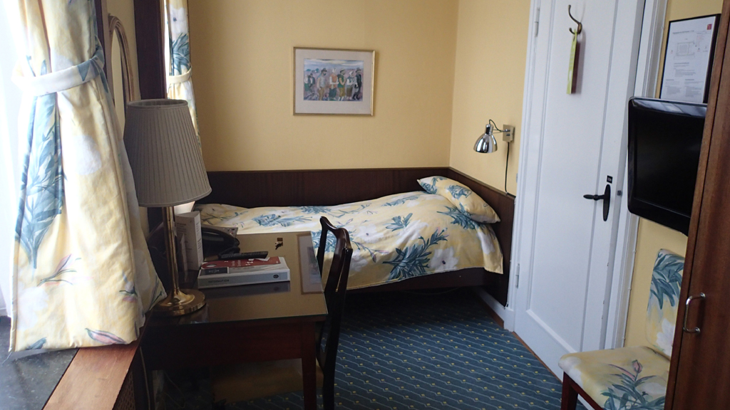 I’ve had more than three hundred rooms in the last ten years, and the one above, at the Rander’s Hotel in Randers, Denmark, was the only “closet” that I had. This would be considered a single room and would have been cheaper than a regular one.