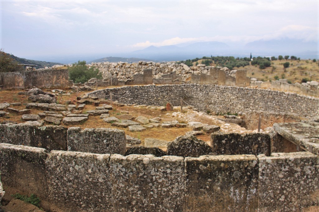 The ruins at Mycenae were like a mini-acropolis. The walk up was on a stone ramp that was very easy to climb. There were few trees, so I imagine on a sunny day, the climb would be much harder than it was for us as the clouds were pretty heavy.