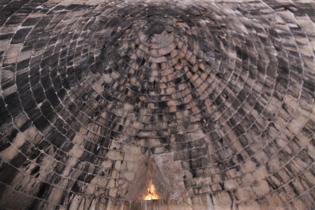 IMG_0403403As each level of the tomb was laid, earth was dumped on the outside and then the next level laid until it was enclosed on top. A triangular opening remained above the opening to allow the soul to escape. Joanna said there were several tombs like this throughout Greece but that this one was unusual because it had a side chamber. The roof inside was impressive.