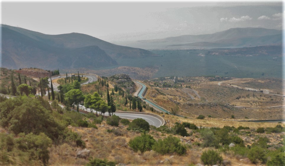 You can look down a long way on the edge of some of those roads. An hour and a half into the trip, we stopped to visit the memorial to Leonidas and the battle of Thermopylae.