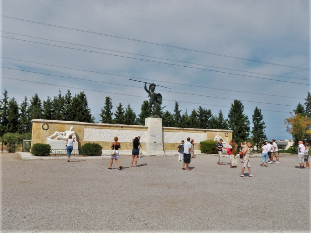 There was an impressive bronze statue of the naked king (which attracted every woman with a camera from every bus there) and a separate memorial for the seven hundred Thespians who joined the Spartans.
