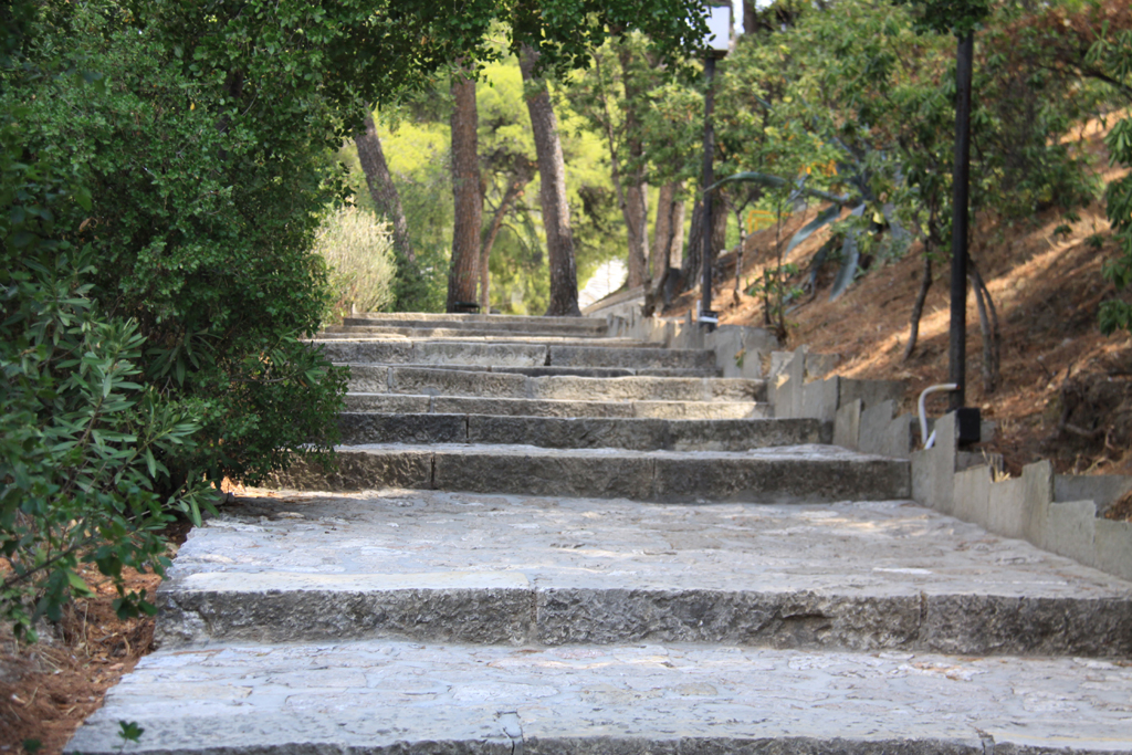 We left Antonios for the short drive to Epidarus. There was a set of easy to climb stairs to the theatre and the steps were surrounded by trees.