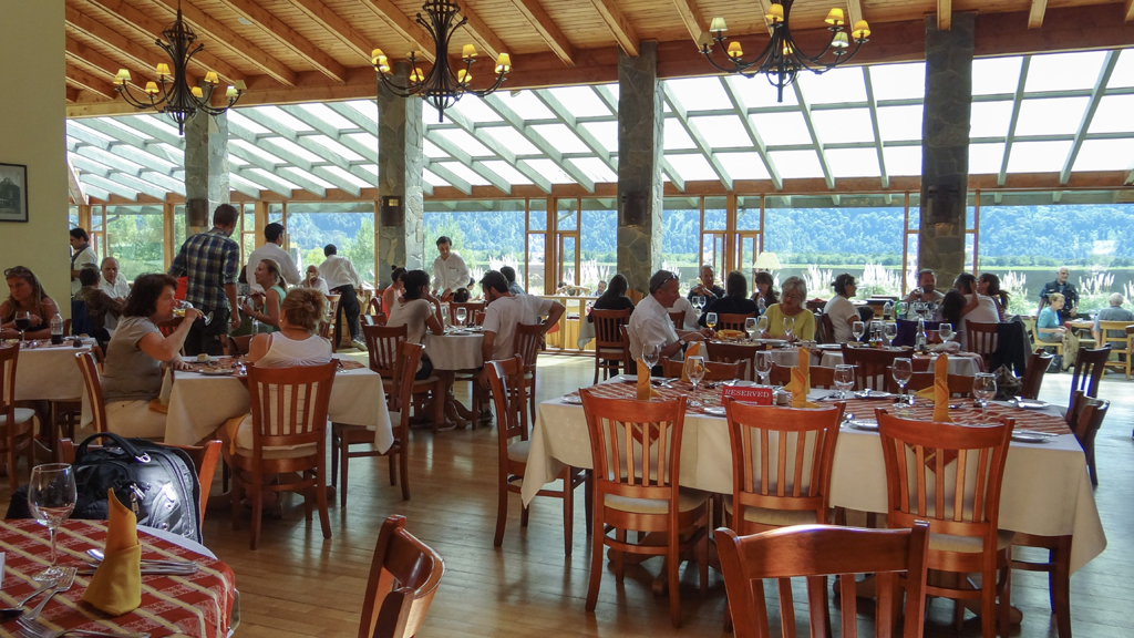 It wasn’t as crazy as it sounds but there were a lot of people in a small area that was also a beach, so we were competing with the beach goers as well. We hit the road by seven and there were delays on the way to Puerto Varas with road construction. We pulled into our hotel, the Cabano del Lago, by 8:30 and Marcelo said the buffet was set for 9 pm.