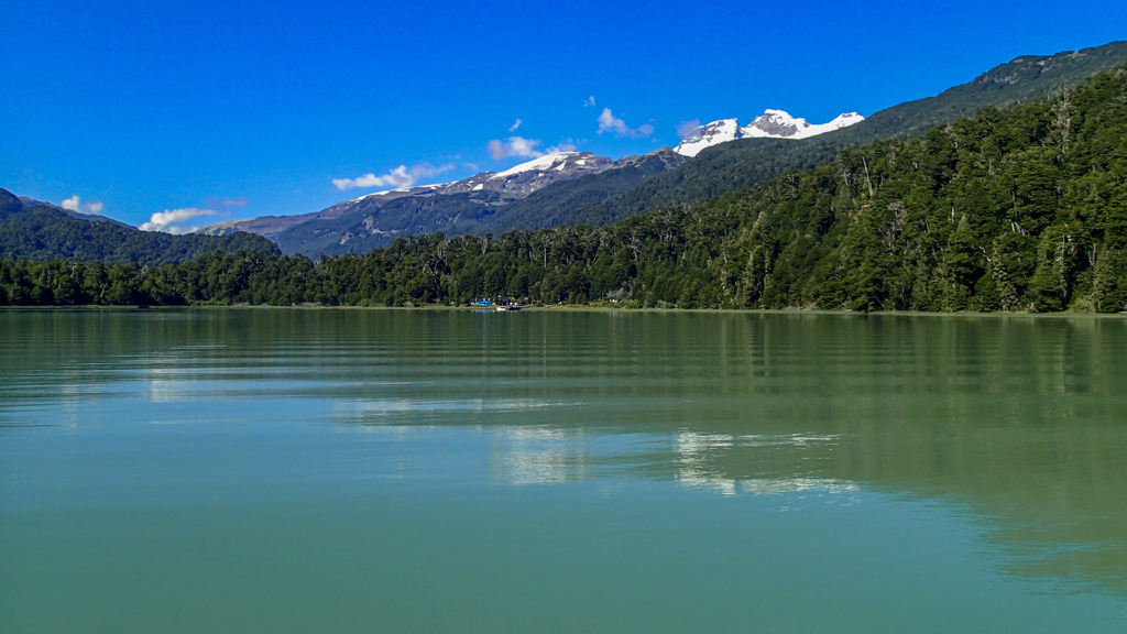 We arrived at the end of the lake where there was a green river flowing into Nahuel Huapi.