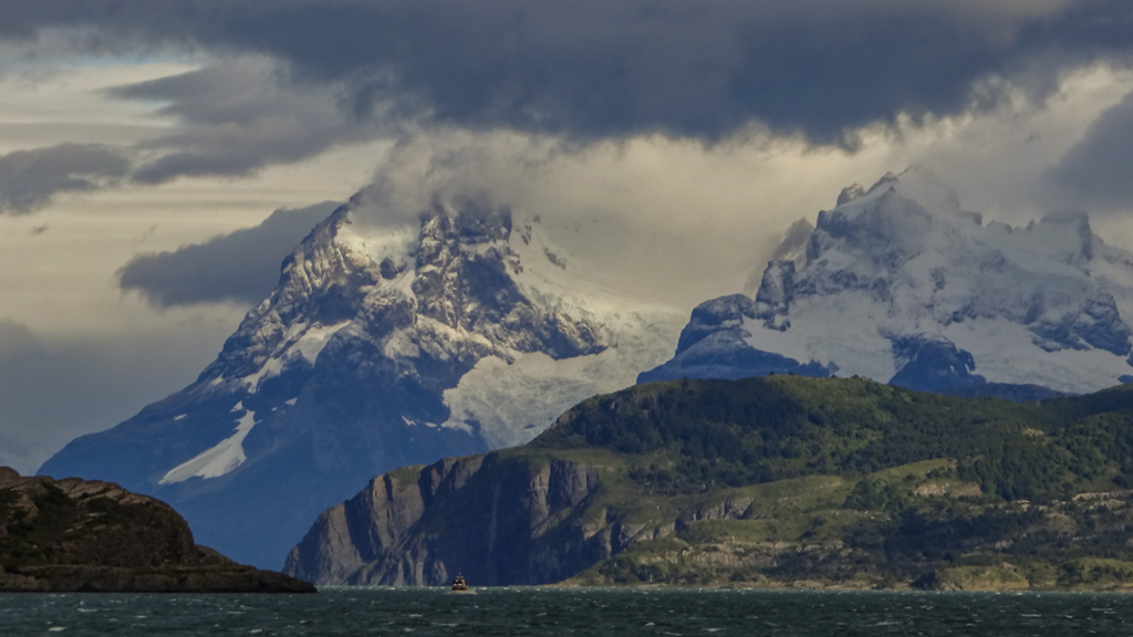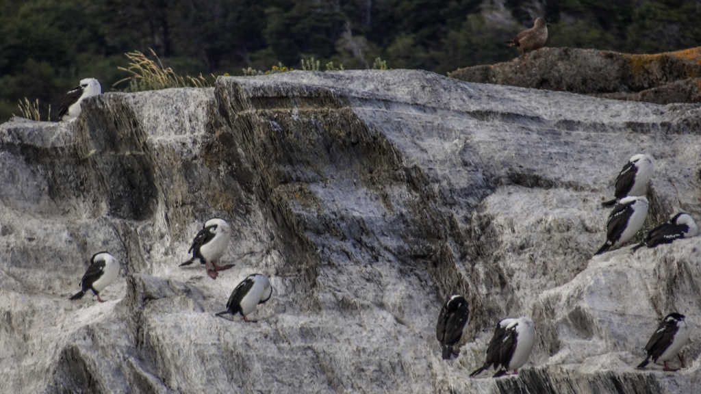 We chugged along the Ultima Esperanza (Last Hope Sound) towards Monte Balmaceda. We got a chance to slow next to a cormorant colony. These birds were much smaller than the ones I saw in China. They were also black and white.