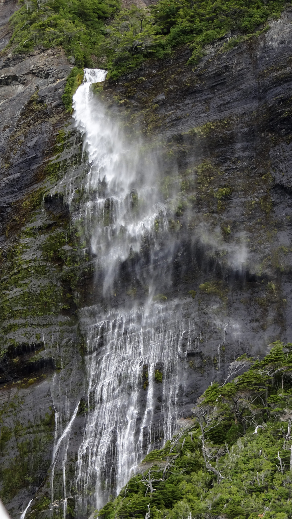 We also slowed next to a waterfall where the water was blowing to the side because the wind was so high.