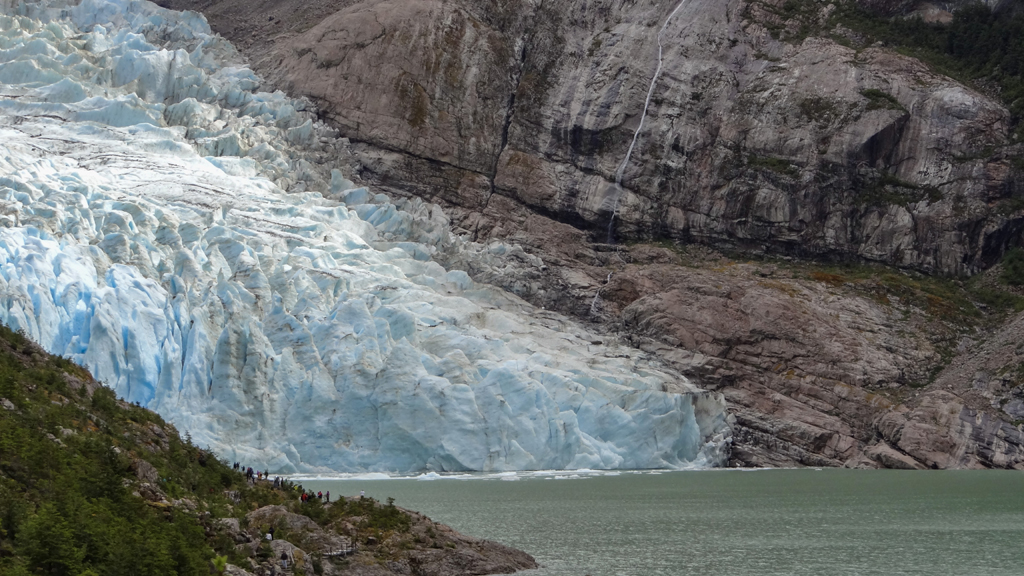 We disembarked and walked along a narrow path (just wide enough for two people to pass without dumping one in the glacial water below) to the base of the Serrano glacier.