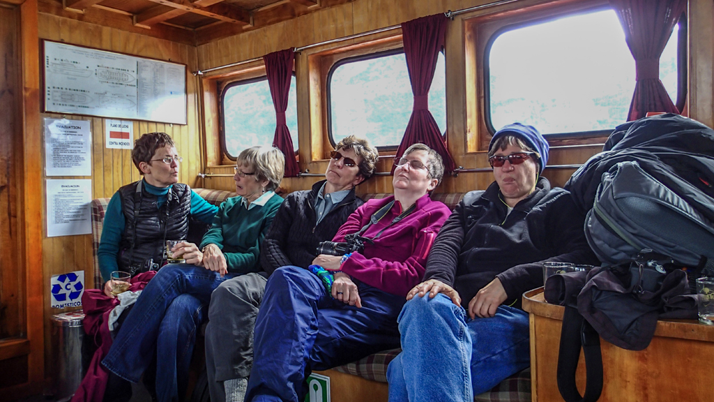 By 4:30, we were back aboard the boat and heading to Puerto Natales. We were going with the wind so it was much easier on the deck. I ran into Max again and he was with a man named Luis who used his broken English (and my non-existent Spanish) to chat. The moment he found out I was Canadian and retired, he got down on his knee and proposed.