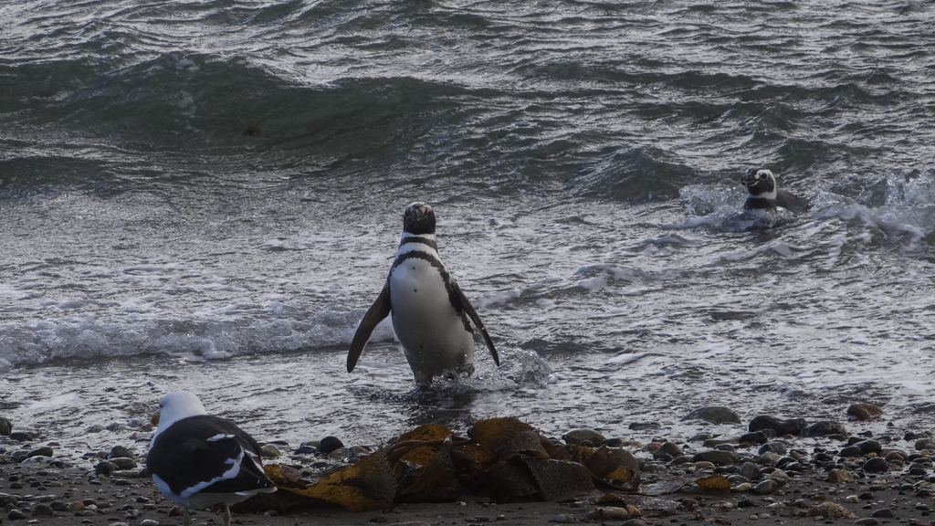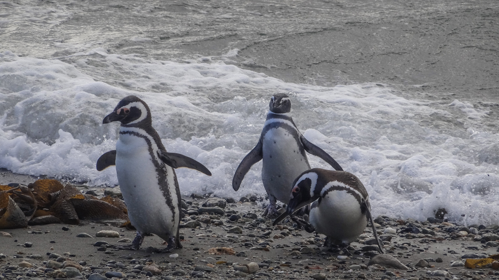 They are warm water penguins so they winter farther north in Peru and Brazil and spend the summer around Punta Arenas. The males will arrive in September and the females will show up a month later with the kids. They stay in the south until February and go north. The males follow in March.