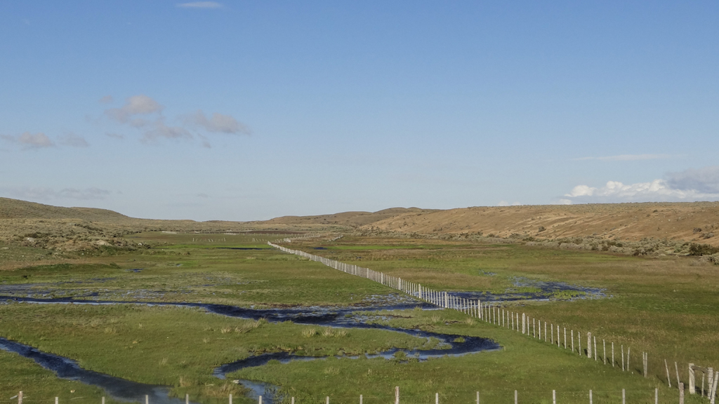 By 5:30, we were ready to head out. We went back over the same bumpy dirt road to the highway and headed north to Puerto Natales. It was a gorgeous sunny drive through a flat, rugged landscape.