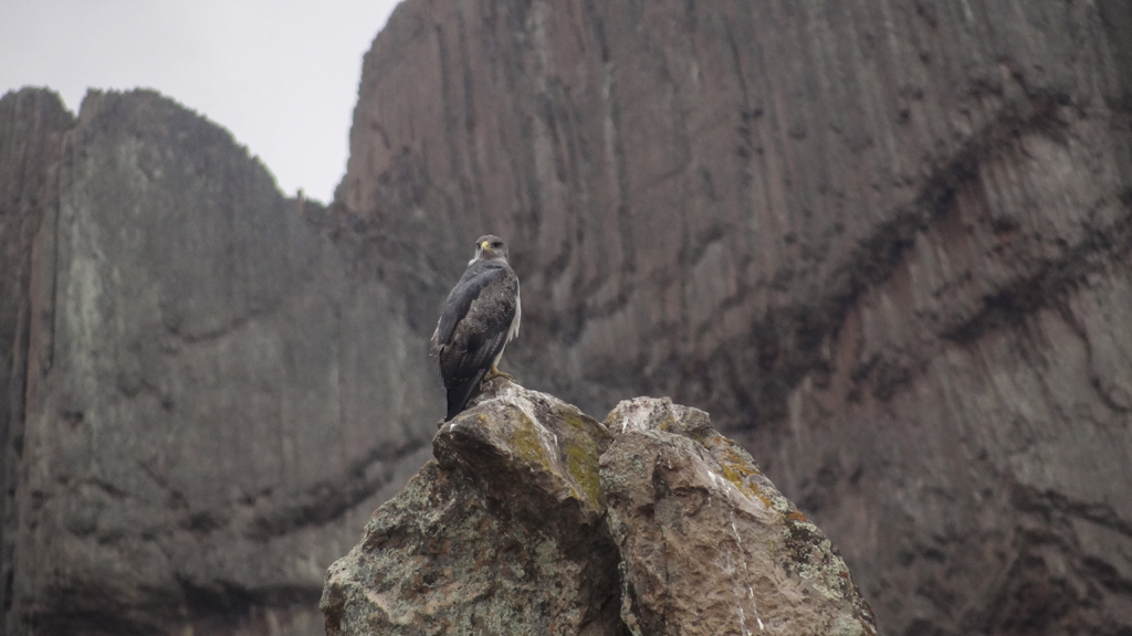 She said there are condors in the area as well but the low winds meant they would likely not be airborne. She said that since the condor eats everything including the bones, their poop is white and you can see where they nest cause the rocks below are white. We also spotted a white breasted eagle.