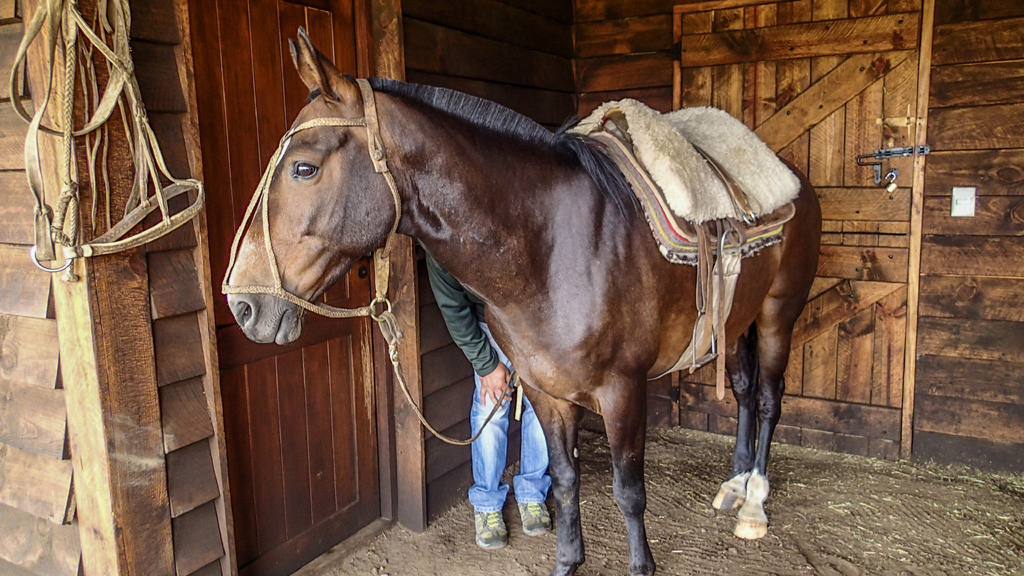 We walked back to the ranch for an Argentine horse saddling demonstration. He had the gaucho show how they put on layers of wool and then a rudimentary saddle with a sheep hide on top and then a cinch.