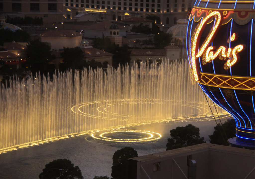 We dropped by the Bellagio to see the conservatory and the fountain show that they put on every half hour. It lasted four minutes and was pretty good. Best part, I could see it from my window at Planet Hollywood.