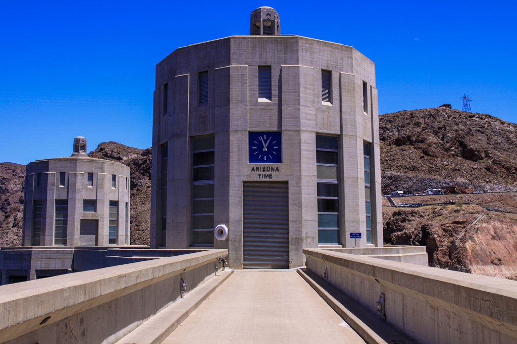With the construction of the dam bypass bridge (name partially for Pat Tillman) only tourist traffic is permitted on the dam. Three guards checked the bus over and we proceeded to drive into Arizona.