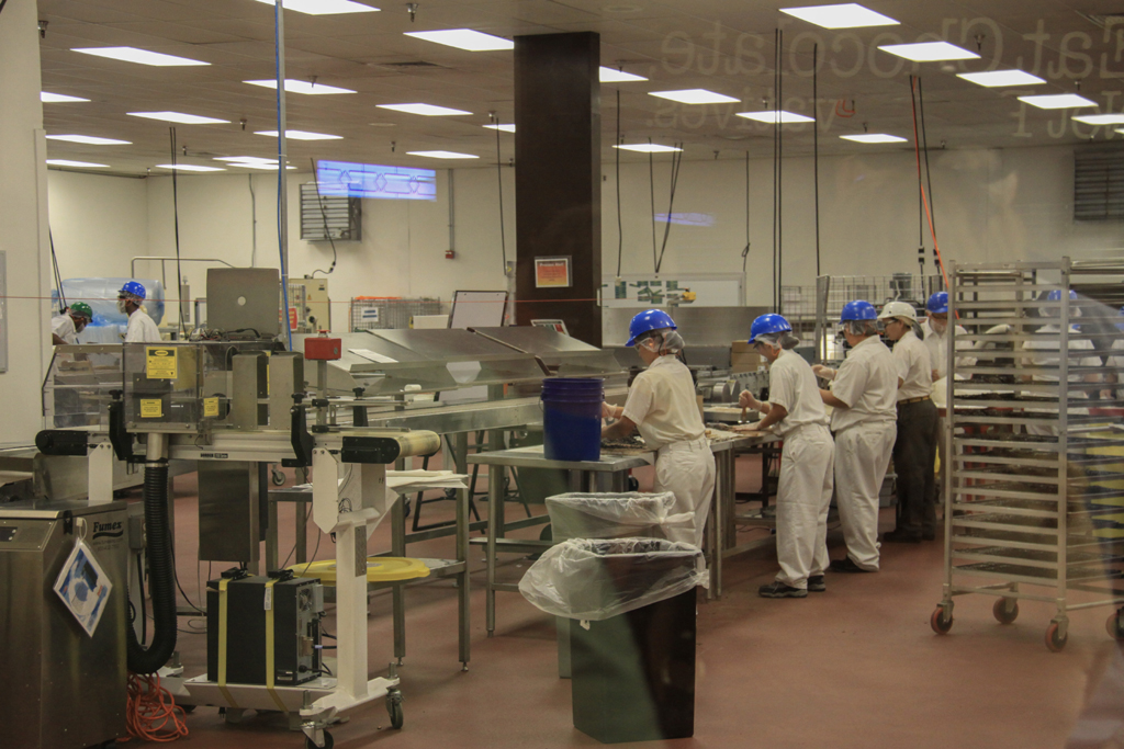 It was one of the Mars factories but was only a tribute plant now. We walked through the M&M store and walked along a short hallway filled with information on one side and windows to watch into the factory on the other side. At the end of the corridor was a woman handing out samples.