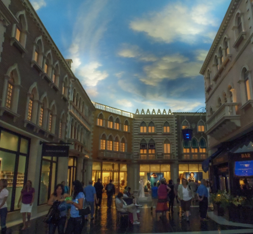 Then I crossed the street into the sun and checked out the shops. It was so hot, I kept going until I got back to Planet Hollywood and checked out the air conditioned Miracle Mile Mall. The mall had everything you would need (it wasn’t a posh mall like some – just a regular mall). The coolest part was the sky over part of the circular mall. It felt real and surreal at the same time.