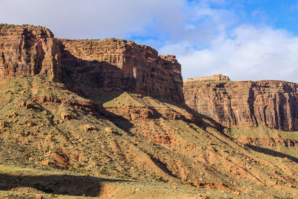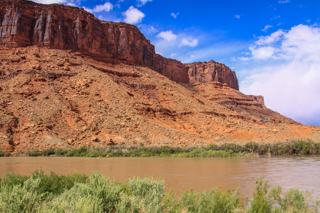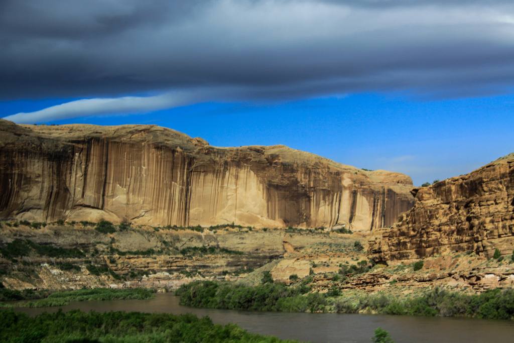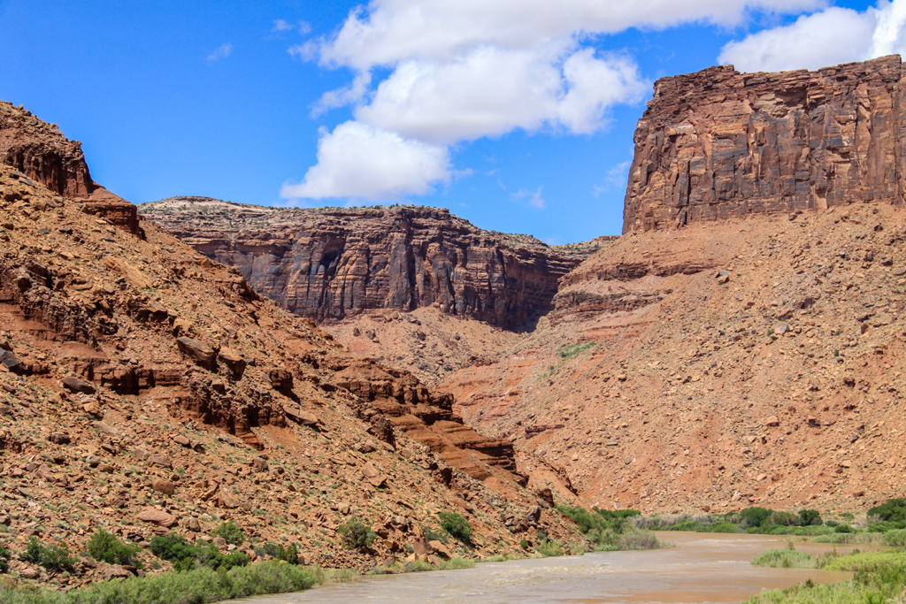 This was a park that not a lot of tourists visit – maybe 300,000 a year. Most go to Arches which sees three times the number of visitors (but the Grand Canyon gets four times as many as Arches). The drive took us through a long valley with steep canyons on either side and the Colorado River to our right.