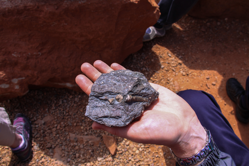 He also passed around a rock with a fossil in it.