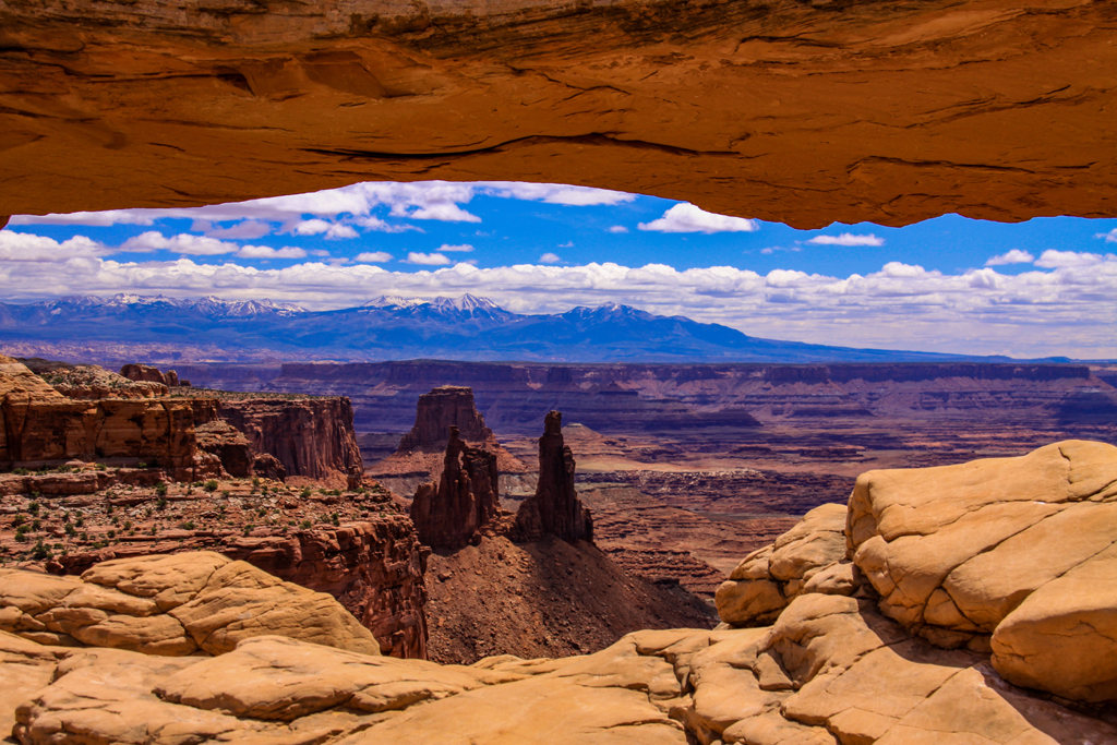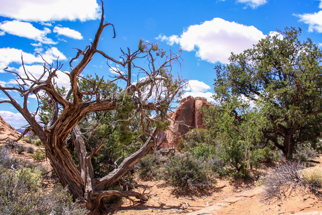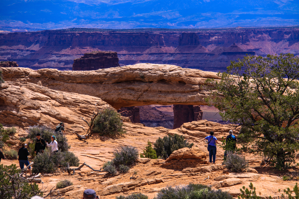 After the talk, we drove to the Mesa Arch. It was a ten minute walk in to see the Arch and we were finding the surroundings as amazing as the rocks. Cactus flowers, driftwood and knarled trees. Beautiful.