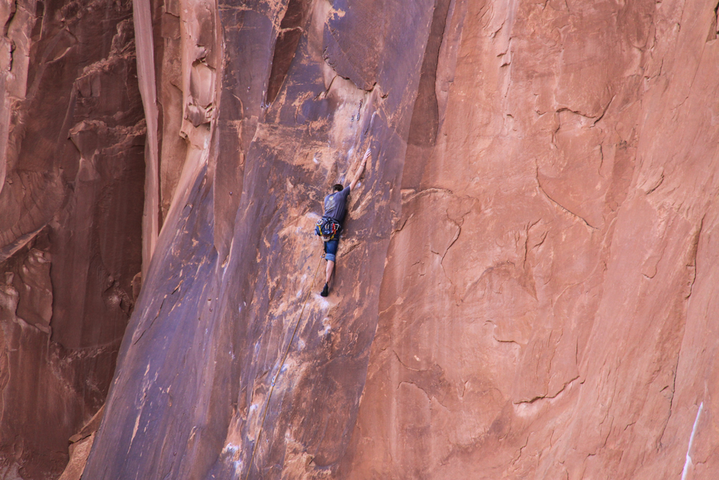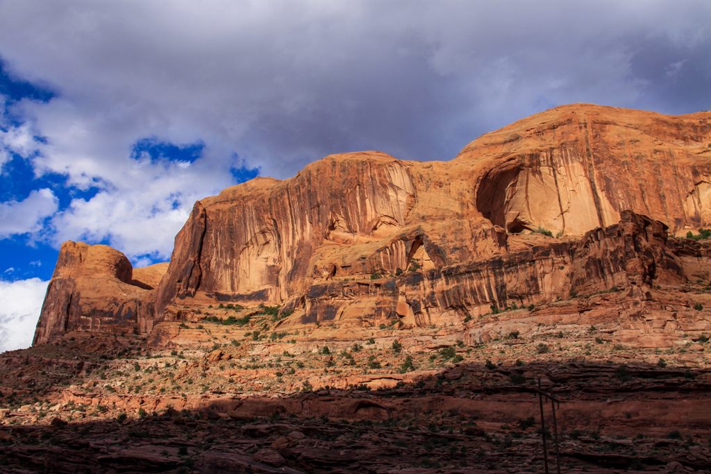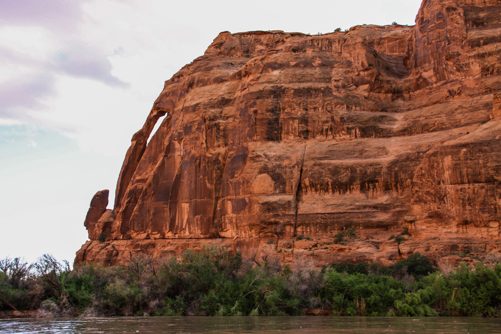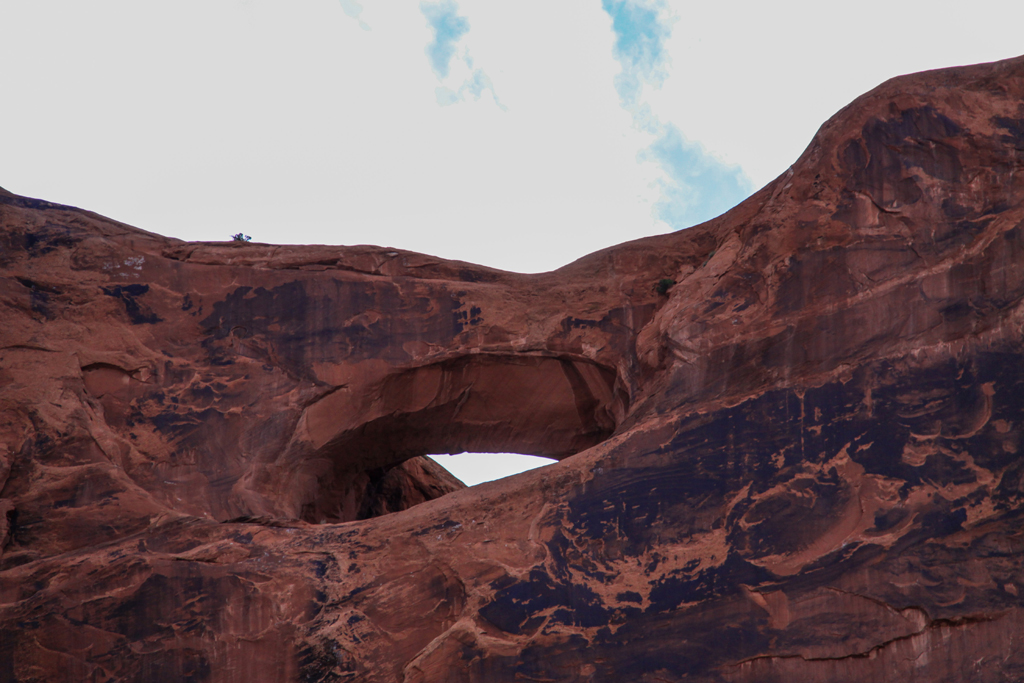 We entered the gorge and he stopped the engine and pointed up at the Poison Spider Arch hundreds of feet above us.