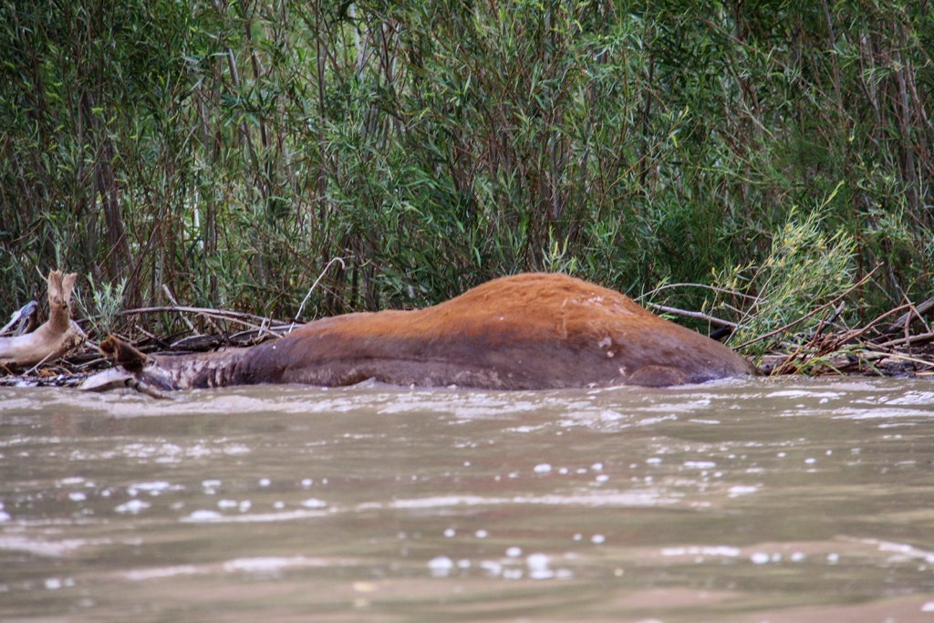 A little farther up the river, we came across the Trafalgar boat and asked if they had seen the dead cow.