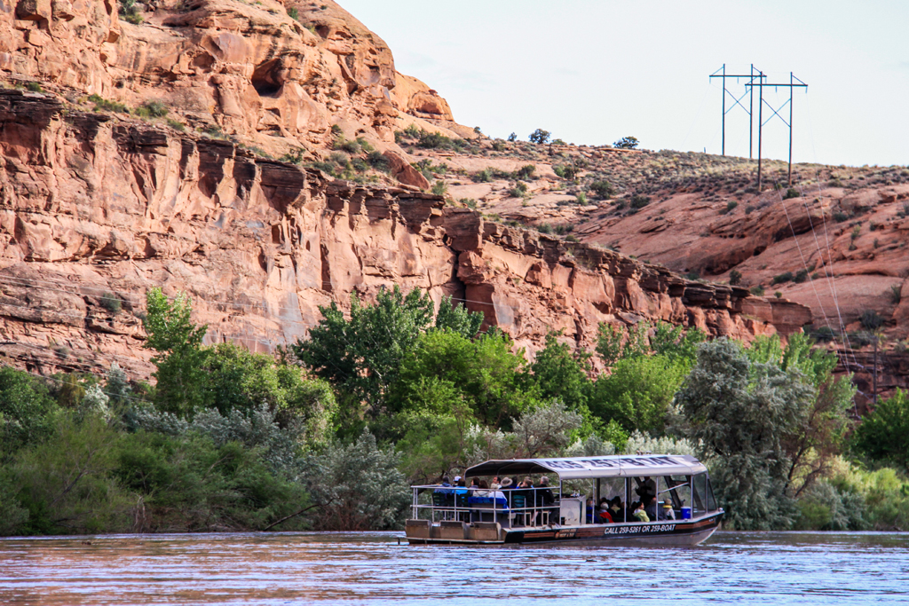 Then he started the engine and turned the boat in a leisurely three-sixty so that the people on the left hand side didn’t get left out. As we drifted, he pointed to two people walking up a trail through all the eroded rock and said it was a jeep trail that was rated among the most difficult.